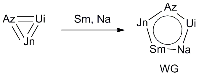 紬「さらに、この三角形分子と、最近発見された新規百合元素であるスミーレンSm、ナオンNaと反応して五角形のリング状分子WGを形成することもわかっています」
