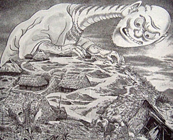 お婆さん「そげだ。熟れた柿のように赤い顔をした入道姿の妖怪でな。柿の種を撒きながら村を徘徊するだが」