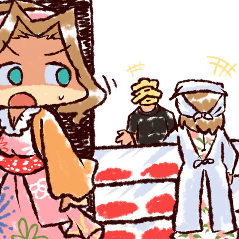 おかみさん連中「あら、寝ちゃったわ」「可愛らしいねえ」「じゃあ二階堂精肉店さんに」「違うでしょ、シェフシェフ!」「ああそうそうシェフね!」